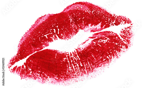 © konstantant, Fototapeta premium big red woman lips isolated on white