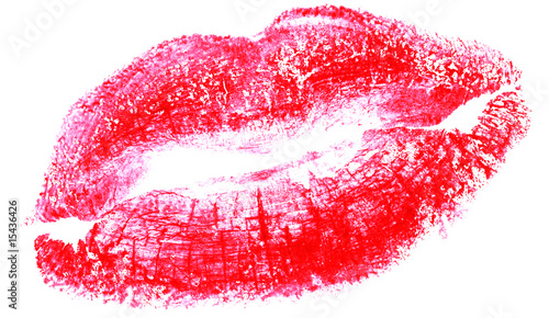 © konstantant, Fototapeta premium big red woman lips isolated on white