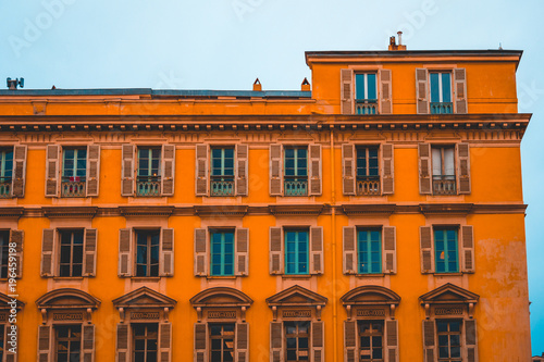 © Novanture, Fototapeta premium big residential building with orange facade in darken tones