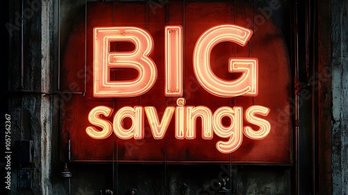 Fototapeta premium Big savings sign on a blue background Neon style.