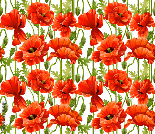 © Azuzl, Fototapeta premium Big seamless pattern of red poppies realistic