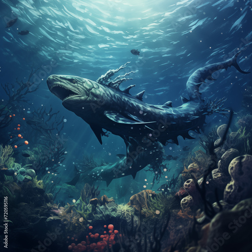 © Hendri, Fototapeta premium big seaserpent monsters under the ocean