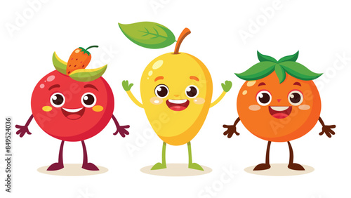 © MdJayedBin, Obraz premium Big Set cute cartoon realistic fruits characters