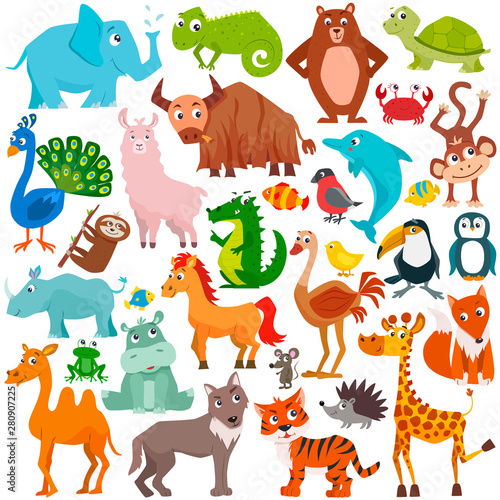 © Svetlana, Naklejka premium Big set of cute cartoon animals. Vector illustration.