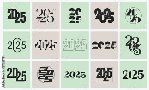 © Shuvro, Naklejka premium Big Set of 2024 number design template. Vector illustration with black labels logo for diaries, notebooks, calendars. Happy new year 2024 number design.