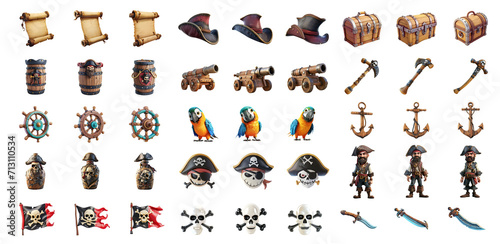 © Mr. Stocker, Fototapeta premium Big set of pirate elements in cartoon style, cut out - stock png.