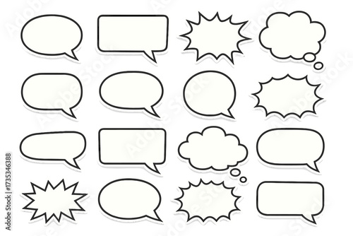 © Edda, Fototapeta premium Big set of retro speech bubbles and empty comic thought balloons. Vector sticker pack for chat, dialogue, and messages. Pop art style quote and exclamation box collection.