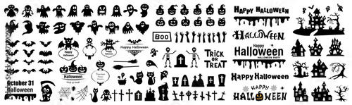 © Ms VectorPlus, Fototapeta premium Big set of silhouettes of Halloween on a white background. Vector illustration