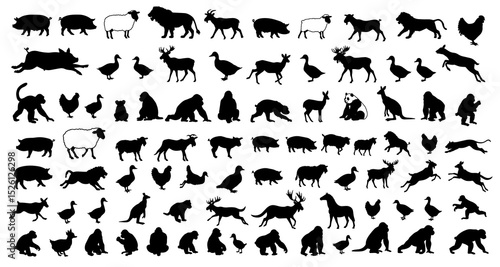 © bow, Naklejka premium big set silhouette popular animal. vector illustration