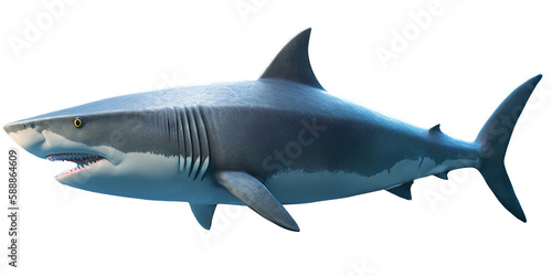 Fototapeta premium big shark, side view, isolated background. Generative Ai