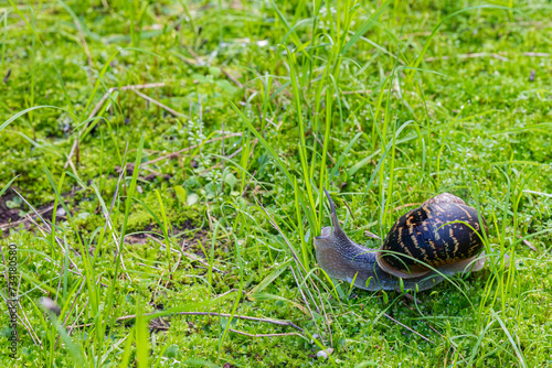 Obraz premium big snail in green grass