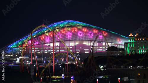 © sergeysikharulidze, Fototapeta premium Big sports arena night panoramic 16:9 horizontal