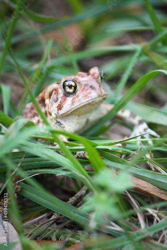 Fototapeta premium Big Spotted Brown Toad in the grass