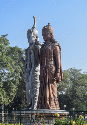 Fototapeta premium Big statue of Lord Sita Ram near Delhi International airport, Delhi, India,...