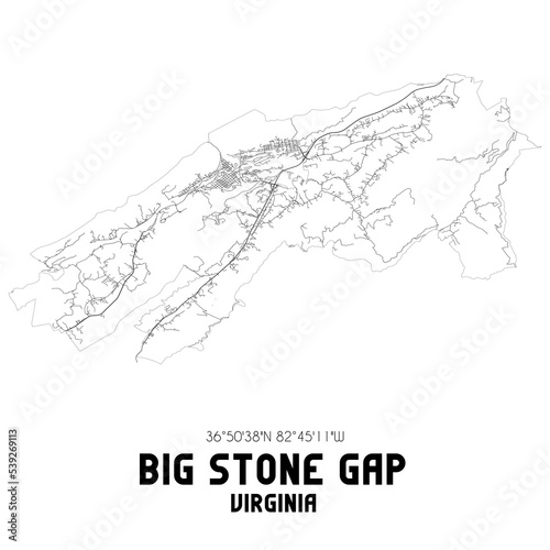 Naklejka premium Big Stone Gap Virginia. US street map with black and white lines.