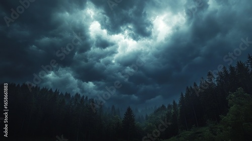 © ThisDesign, Fototapeta premium big storm over a forest generative ai