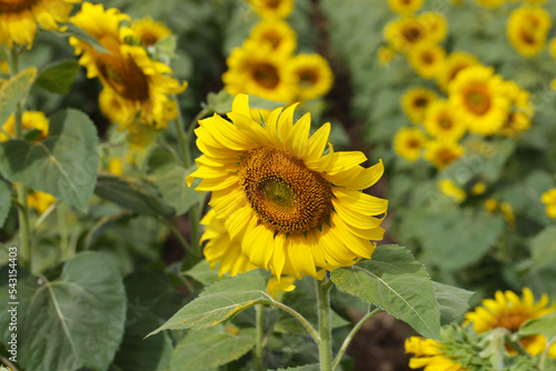 © Sanit, Fototapeta premium Big sunflower field is blooming.