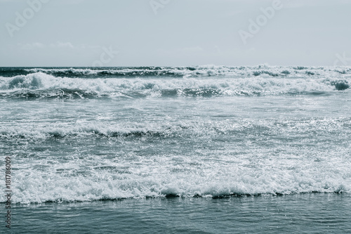 Fototapeta premium Big surf ocean waves. Blue sea water background