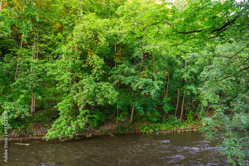 © Supertrooper, Obraz premium Big Tree and River in Summer Park