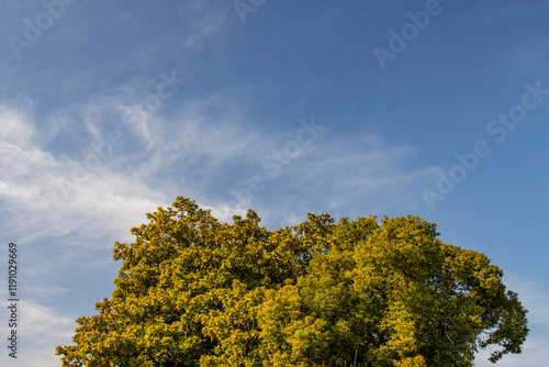Fototapeta premium Big tree, blue sky, tourism, travel, vacation, background, nature