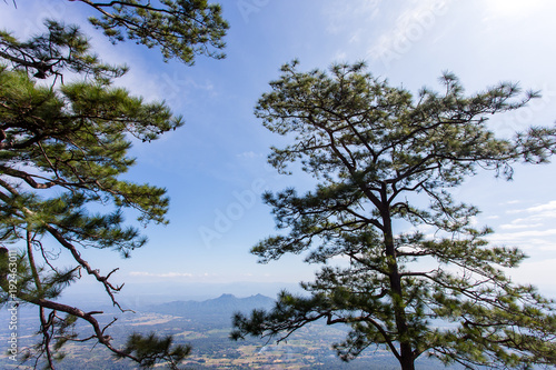 Obraz premium Big tree silhouette sunset sky background