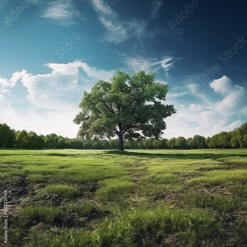 Obraz premium Big tree under blue sky and white clouds