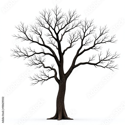 © Withun, Obraz premium Big tree with bare branches against a plain white background, branch, tree