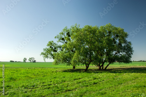 © darekb22, Fototapeta premium Big trees growing on a green meadow and clear sky
