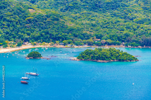 © Arkadi, Obraz premium Big tropical island Ilha Grande Abraao beach panorama Brazil.