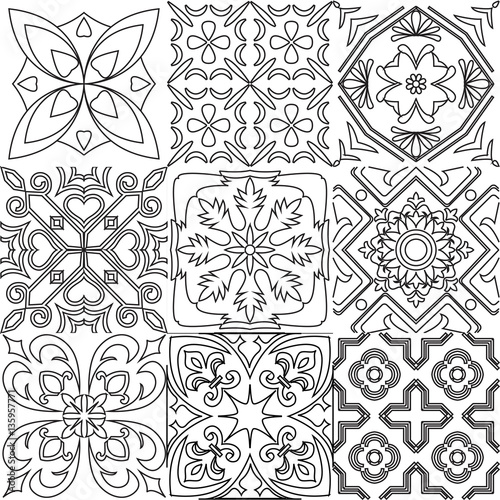 © jolie_nuage, Fototapeta premium Big vector set of black and white tiles background.