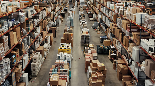 Fototapeta premium Big warehouse filled with goods. Background image. Created with Generative AI...