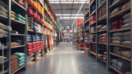 © Artem, Fototapeta premium Big warehouse filled with goods. Background image. Created with Generative AI technology.