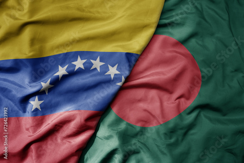 © luzitanija, Fototapeta premium big waving national colorful flag of bangladesh and national flag of venezuela . macro