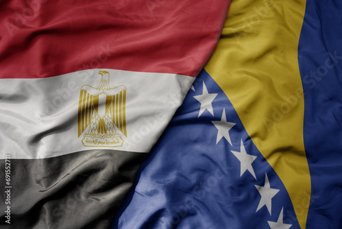 Fototapeta premium big waving national colorful flag of bosnia and herzegovina and national flag of egypt .