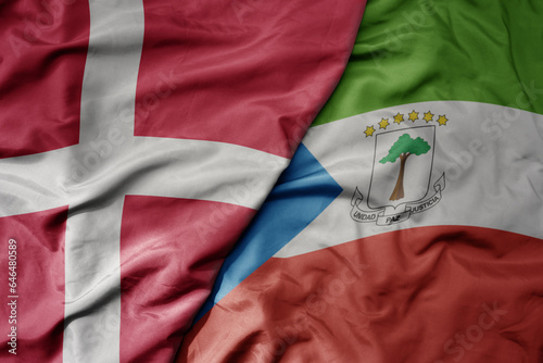 Fototapeta premium big waving national colorful flag of denmark and national flag of equatorial guinea .