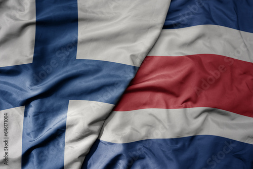 Obraz premium big waving national colorful flag of finland and national flag of costa rica .