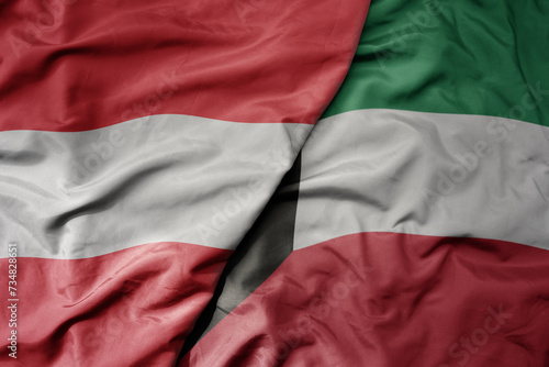 Fototapeta premium big waving national colorful flag of kuwait and national flag of austria .