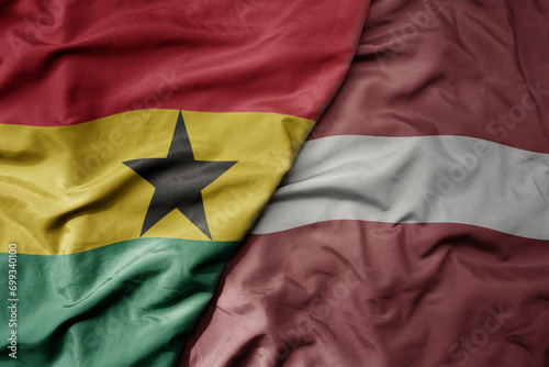 Fototapeta premium big waving national colorful flag of latvia and national flag of ghana .
