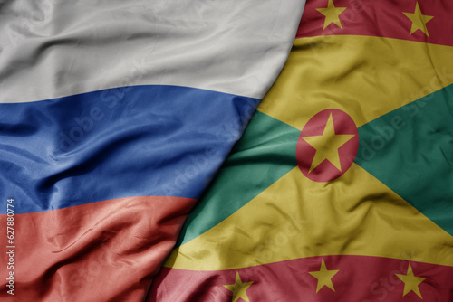 Fototapeta premium big waving realistic national colorful flag of russia and national flag of grenada .