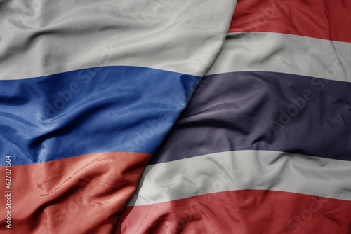 Fototapeta premium big waving realistic national colorful flag of russia and national flag of thailand .