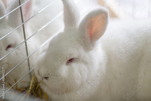 Fototapeta premium Big white rabbit in the cage
