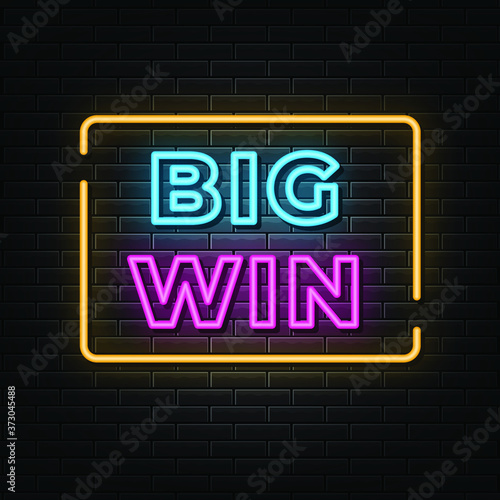 Fototapeta premium Big win neon signs vector. Design template neon sign