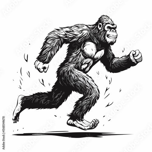 © kalogr, Fototapeta premium Bigfoot Running Vector Illustration isolated on white background.