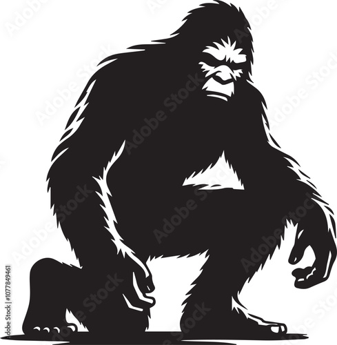 © mdaktaruzzaman, Obraz premium Bigfoot silhouette crouching down appearing curious