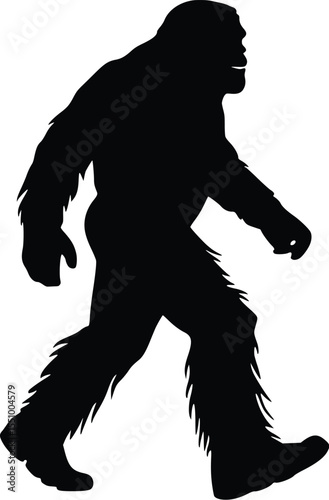 © Vector Bee, Fototapeta premium Bigfoot Silhouette: Mysterious, Powerful, Walking, Dark, Primate, Cryptozoology, Legend, Mythical Creature, Vector Illustration, Isolated Graphic.