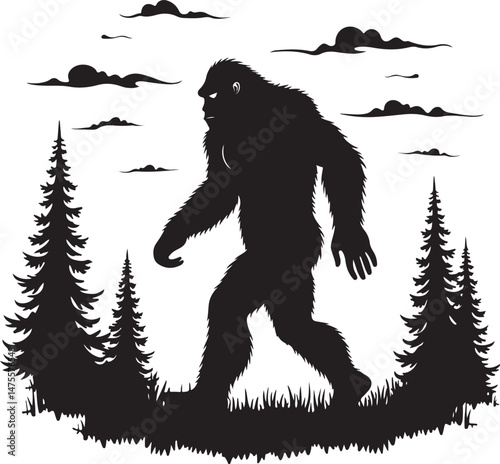 © silhouette verctor, Fototapeta premium Bigfoot Silhouette SVG – Sasquatch Clipart for Cricut & DIY CraftsSasquatch SVG File – Cryptid Bigfoot Decal for Shirts, Stickers & MugsYeti Bigfoot Vector – Printable Forest Creature for Outdoor