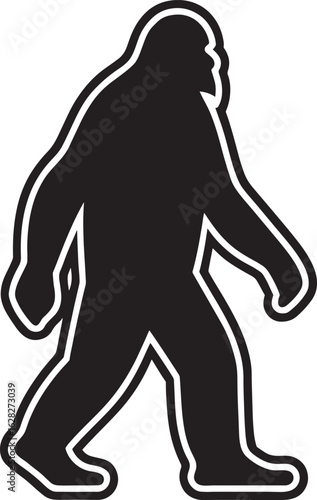 Fototapeta premium Bigfoot Silhouette with White Outline sasquatch yeti