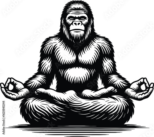 © Hanma Art, Fototapeta premium Bigfoot yoga vector black silhouette print design