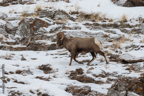 © natureguy, Naklejka premium Bighorn Sheep Ram in Winter in Wyoming