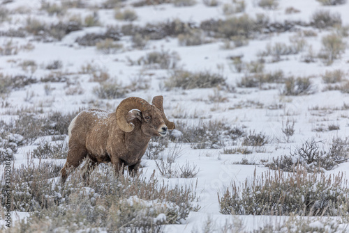 Naklejka premium Bighorn Sheep Ram in Winter in Wyoming
